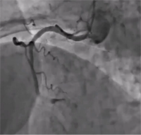 症例は40代の男性。1週間前から階段を上るなどの労作時胸部絞扼感出現。徐々に症状の間隔と、強度が増してきて、当科を受診。CAGでRCAは入口部から完全閉塞しており、左冠動脈中間部に90%狭窄が確認された。